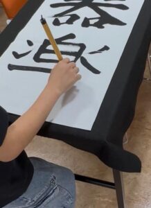 今月の練習会ではいつもと違う大きな筆で