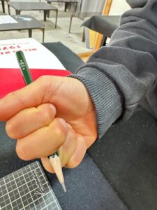 持ち方よりも鉛筆の先にいってしまい